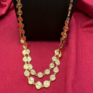 VTG Liz Claiborne Mini-Medallion Gold-Tone Dual Strand Necklace