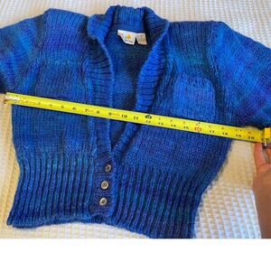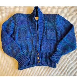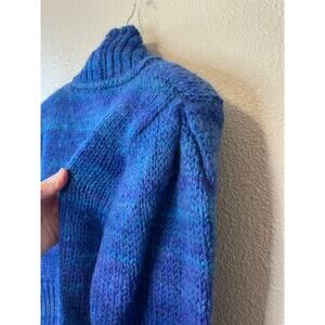 VTG Liz Claiborne Retro Blue Knit Wool Button Up Balloon Sleeve Cardigan Medium