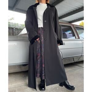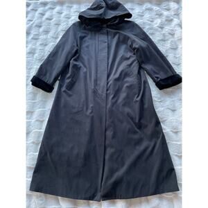 š„VTG Liz Claiborne Velvet Hooded & Cuffs Warmer Lined Maxi Trench Coat Gothic