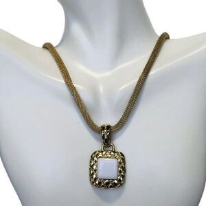 VTG Liz Claiborne White Square Pendant Snake Chain Necklace 21” Gold Grannycore