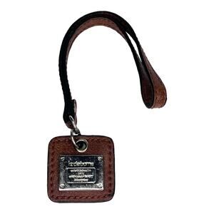 Vintage VTG Liz Claiborne Wristlet Strap Luggage Tag FOB for Handbag Purse Keychain 9" Long with Square "Liz Claiborne Established 1976 And Made For All Lifestyles" Metal On Leather Engraved Plate Fob.