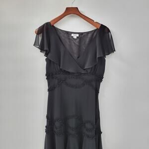 VTG Liz & Co Cocktail Dress Womens 8 Black Ruffled Detail V-Neck Flutter Sleeve