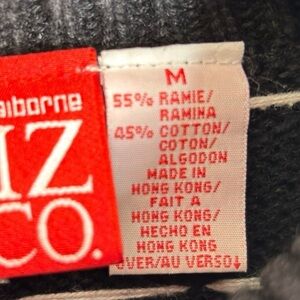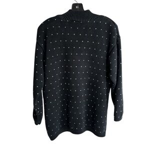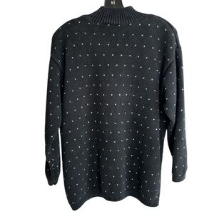 This vintage Liz & Co sweater is perfect for any occasion, from casual to workwear. The tight-knit, Oversized pullover features a fashionable polka dot pattern with embroidered snowflakes and a mock neck neckline. It is made of a comfortable and stretchy ramie and cotton knit fabric that can be worn in any season