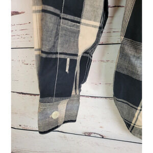 VTG Liz Sport Black Tan Plaid Shoulder Yoke Button Up Shirt Women's Size Small