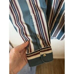 VTG Loafers Reed & James Striped Button Up Shirt Blue Green Red Long Sleeve XL