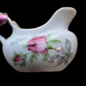 Keywords: creamer, sugar bowl, porcelain, floral, rose, gold trim, serving set, tea set, vintage, elegant, tableware, kitchen, dining, gift