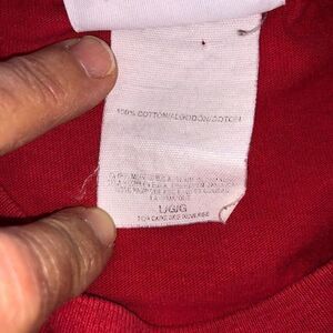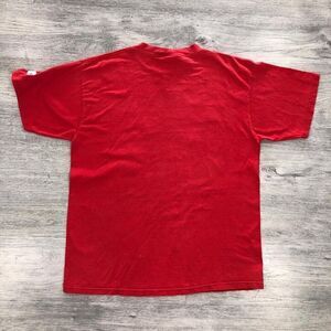 Show your love for the Chicago Bulls and Michael Jordan with this vintage Logo Athletic shirt. Celebrate their 5-time NBA Championship wins in style with this red shirt featuring the iconic championship rings. This shirt is a must-have for any basketball fan, perfect for game nights and casual wear. It's made of high-quality material, ensuring long-lasting wear and comfort. The shirt is size L and suitable for men.