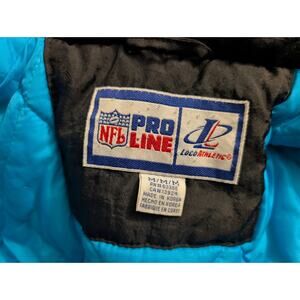 VTG Logo Athletic Carolina Panthers Blue Mens Medium Jacket. The jacket is in good overall condition, it has some stitching loose near the hood. The measurments are in the pictures.
