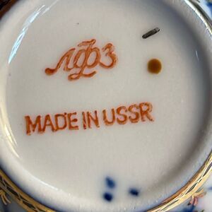 VTG Lomonosov Imperial Porcelain Tulip net pattern cobalt blue 22K gold teacup s