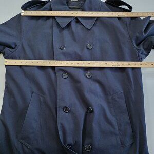 VTG London Fog Trench Coat 40R Men Navy Lined Zip Lining Double Breasted Long