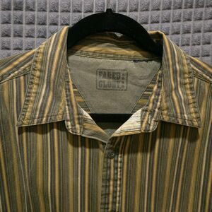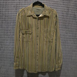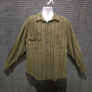 VTG Long Sleeve Button Shirt Mens Lg Green Stripe 90s Y2K Collar Western Cowboy
