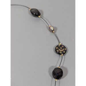 VTG Lonnie Lovness Black Gold Tone Star Bead Wire Station Necklace 20"