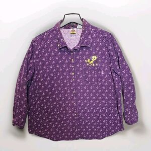 VTG Looney Tunes Women (22/24) long Sleeve Button Up Shirt Purple Cordory Tweety