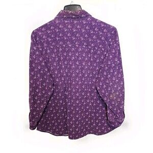 Add a touch of vintage charm to your wardrobe with this Looney Tunes button-up shirt featuring Tweety Bird in a vibrant purple color. The cordory fabric adds a unique texture to the long sleeves, making it a perfect choice for any occasion. The shirt is designed with a button-up style and is ideal for women who love to experiment with different characters and themes. The top is a perfect fit for any casual or formal event and is a must-have for any Looney Tunes fan.