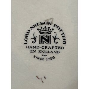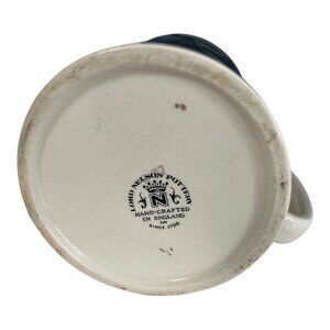 This vintage Lord Nelson Pottery mug features a hand-painted style design of a mountain goat standing among rocky peaks, accented with a fine gold rim. Made in England and marked with the classic Lord Nelson Pottery hallmark, this piece reflects the craftsmanship of a brand with roots dating back to 1758. A charming addition for collectors of English pottery, wildlife art, or rustic cabin décor.