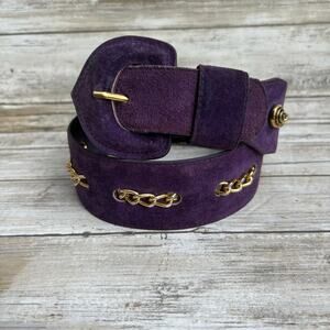 Style: 80’s/90’s purple suede belt. Adjustable with gold tone chain link hardware