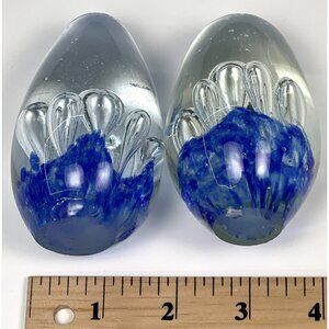 VTG Lot 3 MCM 3.5" Cobalt Hand Blown Egg-Shaped Controlled Bubble PAPERWEIGHTS
