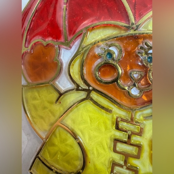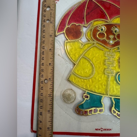 VTG Lot Of 3 Bear in Raincoat Crystalline Sun Catcher Stained Glass Look NIB