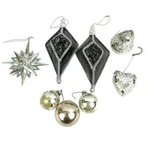 VTG Lot of 8 Mercury Glass Ornaments Mirror Heart Bell Stars Holiday Christmas