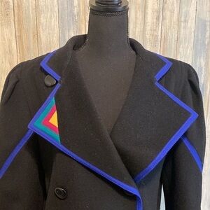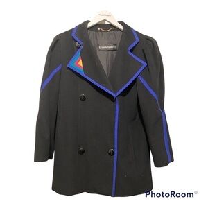 VTG Louis Feraud Double Brested Blue Trim Pea Coat | Size 10 | Unique Design