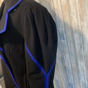 VTG Louis Feraud Double Brested Blue Trim Pea Coat | Size 10 | Puff Sleeve