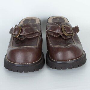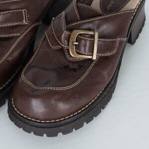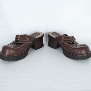 VTG Lower East Side Womens Platform Mules Size 8 Brown Y2K Chunky Heel Buckle