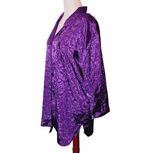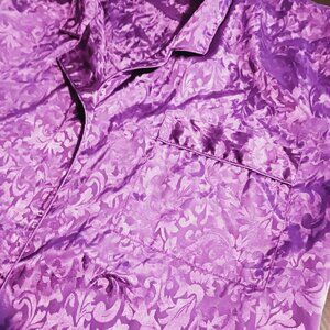 VTG Lucie Ann II Purple Satin Floral Longsleeve Button-Up Collared Nightshirt M
