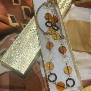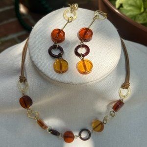 VTG Lucite Amber/Brown/Yellow/Clear Round Disc Earrings Necklace SET