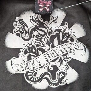 VTG Lucky 13 Collared Lightweight Biker Jacket Women's XL True Blue Angel Wings.