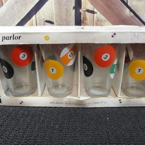 VTG Luminarc Billiard Ball Pool Parlor 16oz Pup Glasses~NOS~Man Cave~Pool bar