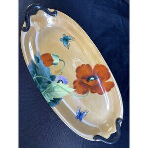 Vintage Lusterware Oval Platter Poppy Butterfly Relish Dish Made In Japan Handles Very very good condition. Some use marks. Beautiful 13" long x 8" wide x 1" tall
