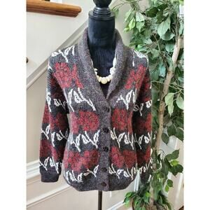 VTG Luxury Multicolor Acrylic Long Sleeve Button Front Knit Cardigan Sweater L
