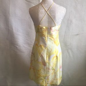 Sleeveless spring summer dress. keyhole halter, x-back spaghetti straps.