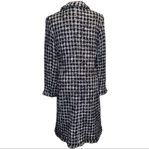 Vintage Marvin Richards Houndstooth Tweed Wool Midi Boucle Coat With Fringe Hem