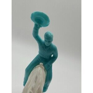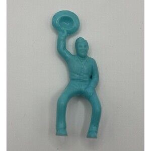 VTG MARX Roy Rogers Mounted Figure Holding Hat Blue Plastic 3" with Bucking Horse