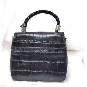 VTG M.C. MARC CHANTAL Black Embossed Croc Leather Handbag & Heart Charm