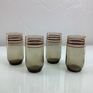 VTG MCM 1970s Smoked Tumblers Orange & Brown drinkware set of 4 EUC