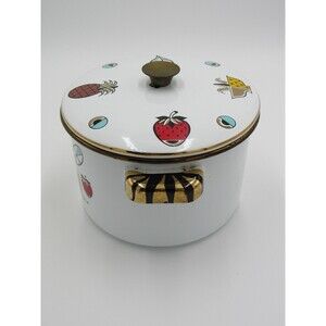 VTG MCM 2 qt Sauce Pot Lid Georges Briard Pineapple Enamelware 60s Retro