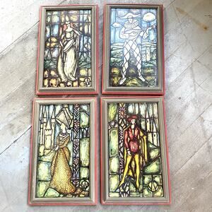 The product is a set of four rare vintage 1950s framed art prints featuring a harlequin style design depicting scenes from New York City. The prints are in a portrait orientation and are framed in an unknown style. The colorful prints measure 10 inches in length and 16 inches in height, making them a unique and eye-catching addition to any art collection. Perfect for fans of social history, famous places, and contemporary art, these prints capture the essence of New York City in the 1960s.