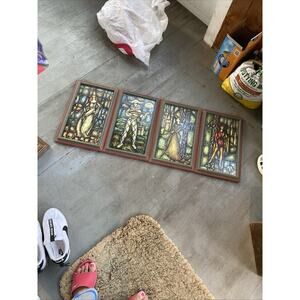 The product is a set of four rare vintage 1950s framed art prints featuring a harlequin style design depicting scenes from New York City. The prints are in a portrait orientation and are framed in an unknown style. The colorful prints measure 10 inches in length and 16 inches in height, making them a unique and eye-catching addition to any art collection. Perfect for fans of social history, famous places, and contemporary art, these prints capture the essence of New York City in the 1960s.
