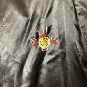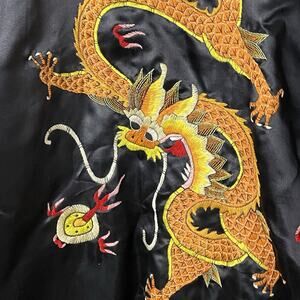 VTG MCM Asian Black Silk Embroidered Golden Chinese Dragon Robe Kimono Sz S/M/L