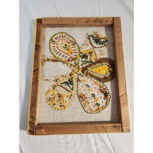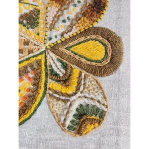 VTG MCM Crewel Original Embroidery Large Flower Gold Sienna Avocado 12 X 10