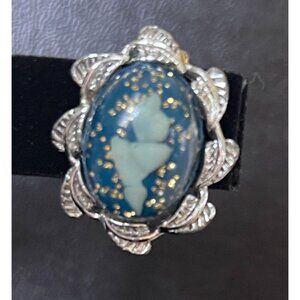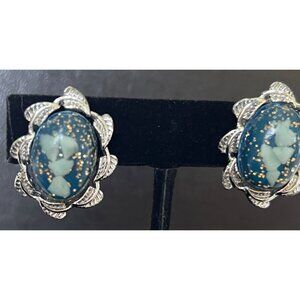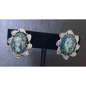 Featured is a pair of vintage clip on earrings. The earrings are Oval lucite with confetti and sparkles inside. The background color is a dark blue. These are clip on earrings. Please see pics closely as they are best indicator of condition.