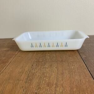 VTG MCM Fire King Casserole Dish Milk Glass Atomic Star Candle Glow 432 1.5 QT