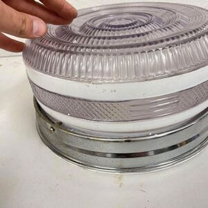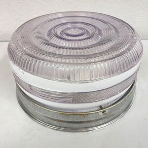 VTG MCM Flush Mount Glass 10” Ceiling Light Cover Deco Globe White Stripes -HLBN