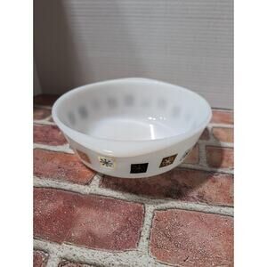 VTG MCM Inland Glass 8.5" Casserole Dish Atomic Snowflake Black Gold No Lid