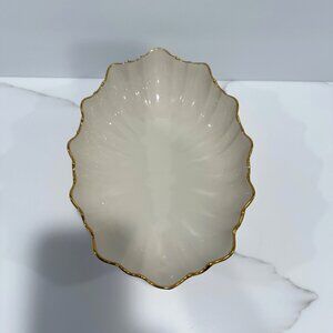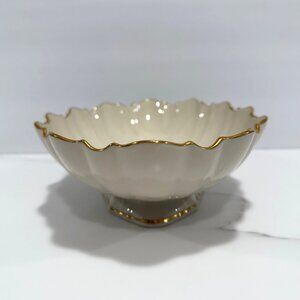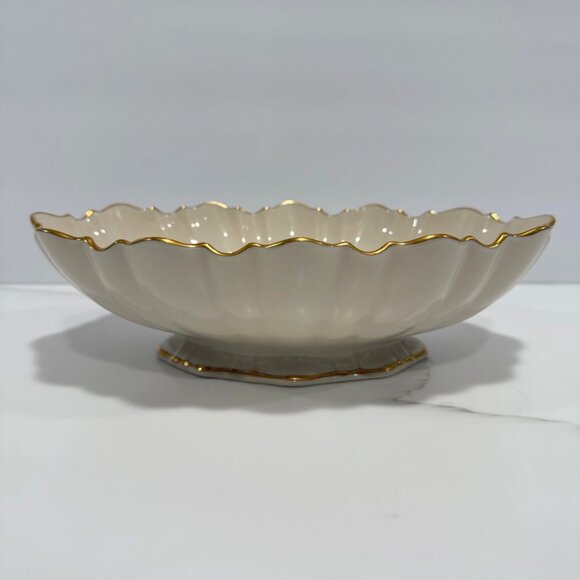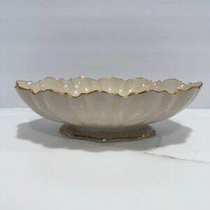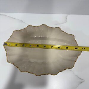 VTG MCM Lenox Scalloped Edge Centerpiece Bowl Ivory 24K Gold Trim Trinket Dish