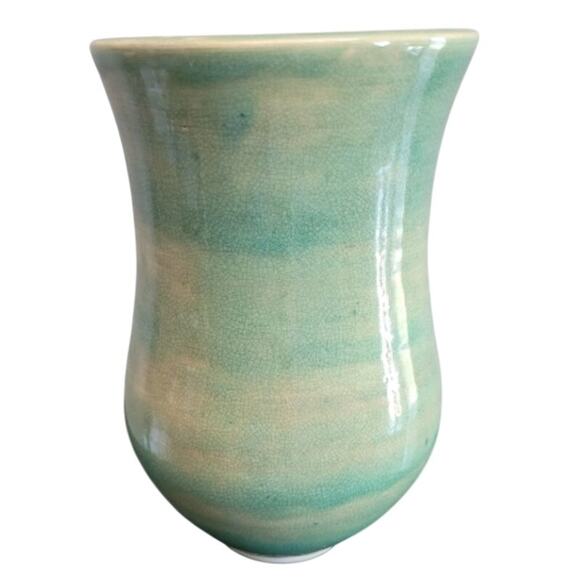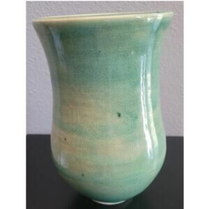 VTG MCM Light Green Studio Glazed Pottery Vase 8 inches Tall