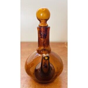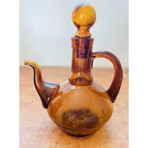 VTG MCM Pilgrim Blown Glass Amber Mini Pitcher Vase Teapot Cruet 5 3/4” Tall