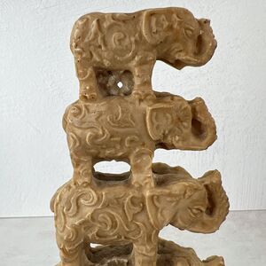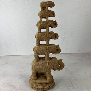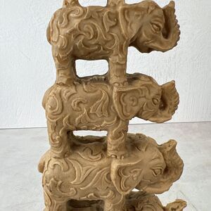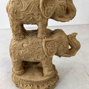 This vintage and modern-style resin figurine is a unique addition to any collection. The six elephant pyramid stack tower stands at 14.5 inches tall and features intricate details. One elephant is missing from the top, adding character and charm to the piece. The material used for this figurine is resin, and the animal class is elephant. This item is perfect for collectors who appreciate the beauty of wild animals, particularly elephants.